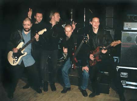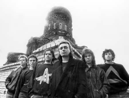 “Алиса”. 1988 год. Слева направо сидят: Кондратенко Павел, Шаталин Андрей; стоят: Нефёдов Михаил, Самойлов Пётр, Кинчев Константин, Журавлёв Александр. |