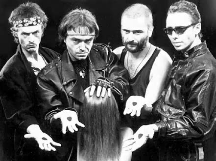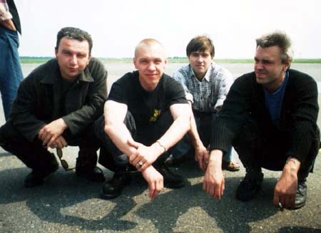 Тур “Звёзды театра, кино, эстрады и рок-музыки — за будущее Свободной России”, 1996 г. Слева направо: Шахрин В.(“ЧайФ”), Скляр А.(“Ва-банкъ”), Васильев А.(“Сплин”), Кинчев К. |